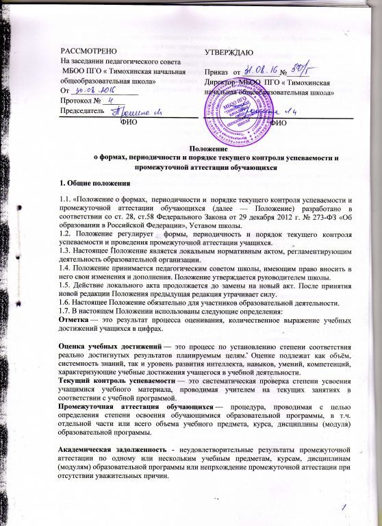 Положение о порядке оформления образовательных отношений в МБОО ПГО Тимохинская НОШ